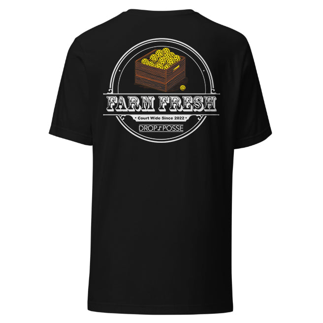 Introducing the Drop Posse Farm Fresh Pickleball T-Shirt, a unique and creative spin on your favorite sport! This one-of-a-kind tee is perfect for pickleball players, fans, and enthusiasts who enjoy a quirky, vintage-inspired design. Made from premium materials, our Farm Fresh T-Shirt guarantees comfort and style both on and off the court.